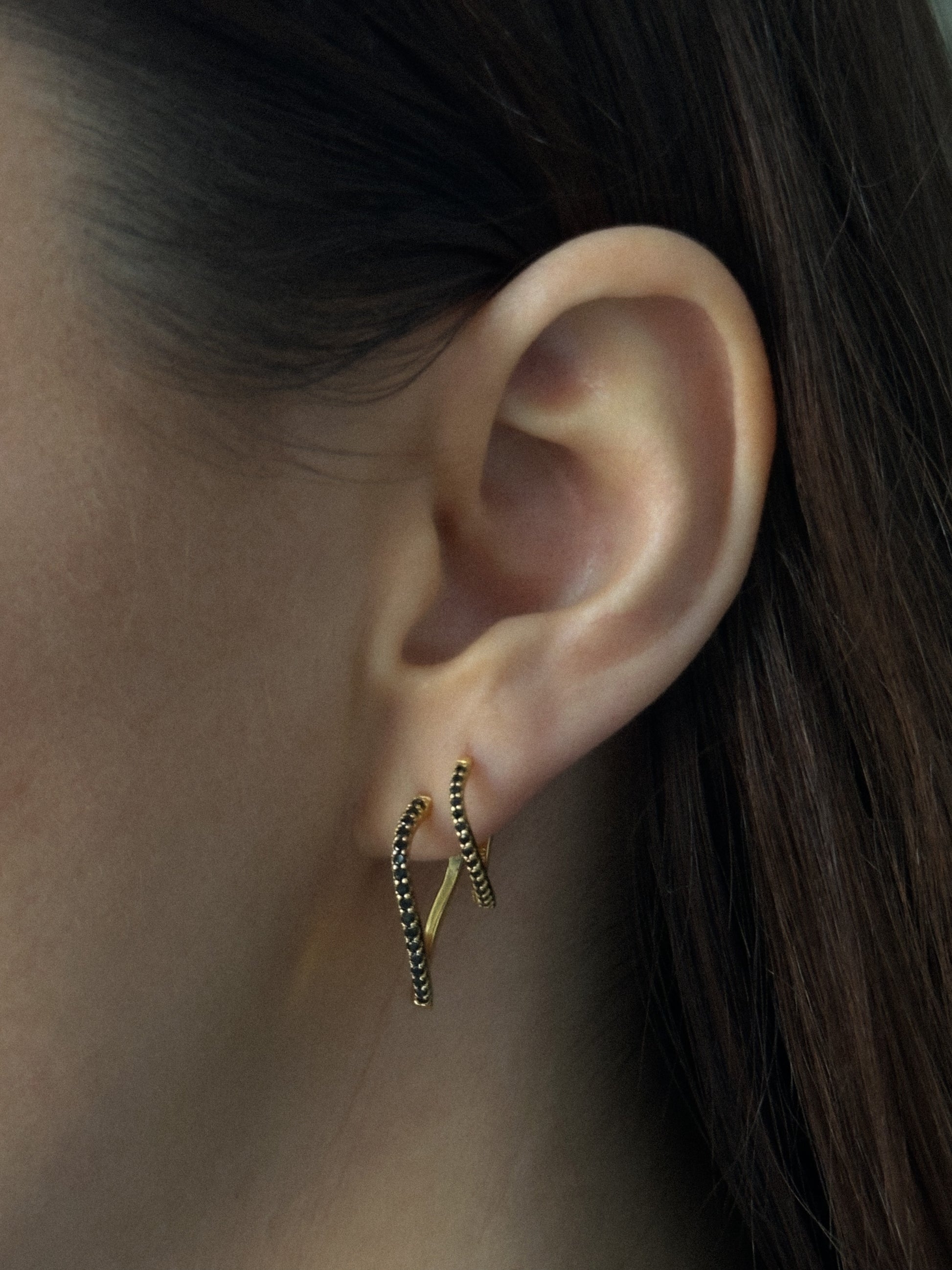 Disse smukke creoler er prydet med en række funklende krystaller, der skaber et blændende og glamourøst look. Deres indviklede design tilføjer et strejf af elegance til ethvert outfit. For et stilfuldt og koordineret look kan de kombineres perfekt med Amelia Studs. Kombinationen af de funklende hoops og de smarte studs tilføjer en harmonisk blanding af raffinement og trendiness til din samlede smykkesamling