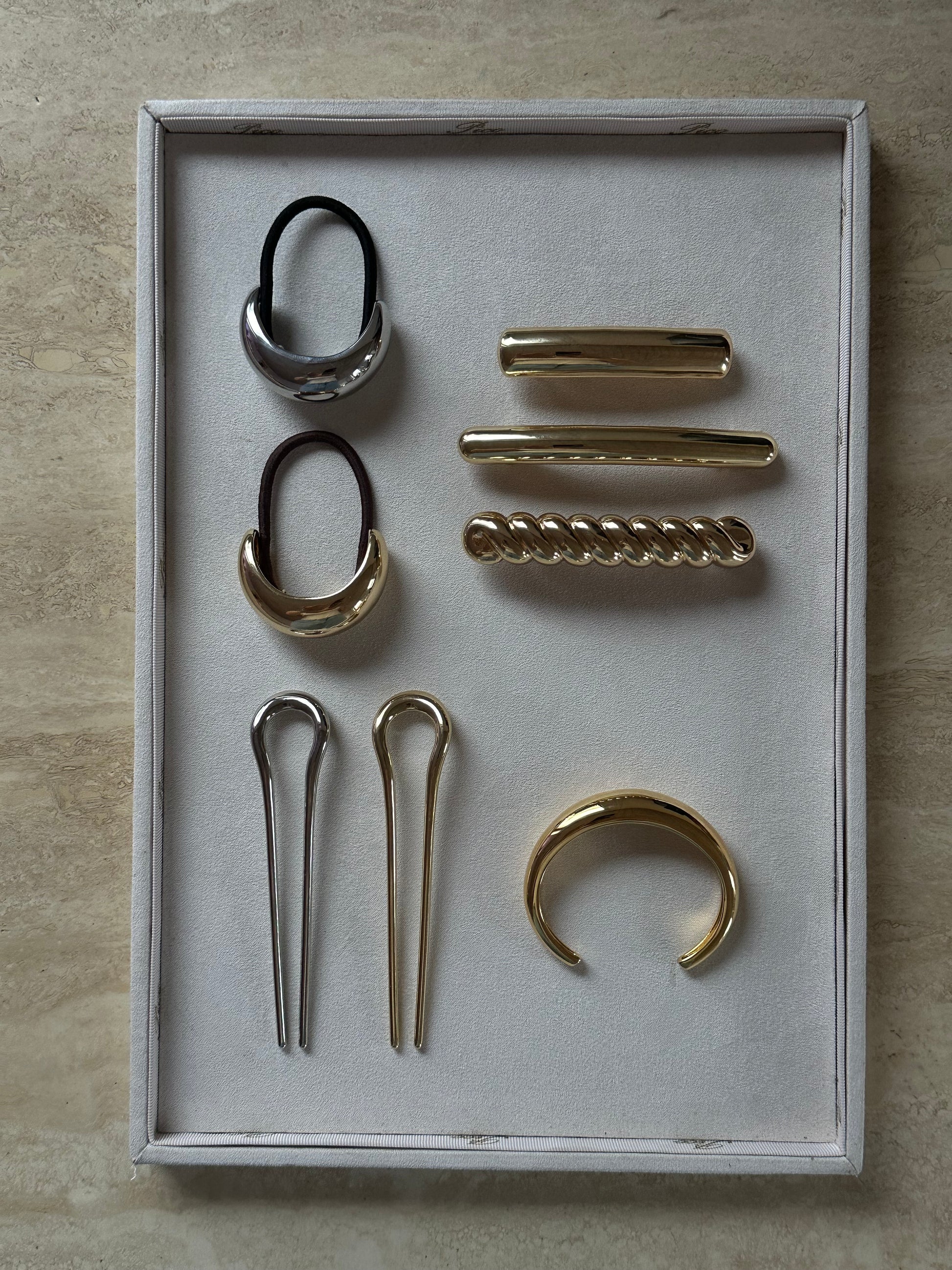 Giv dit hår et løft med Aviaya hårnålen. Denne slanke metalnål tilføjer et strejf af elegance og raffinement til enhver frisure og sikrer ubesværet dit look med en moderne, minimalistisk flair.