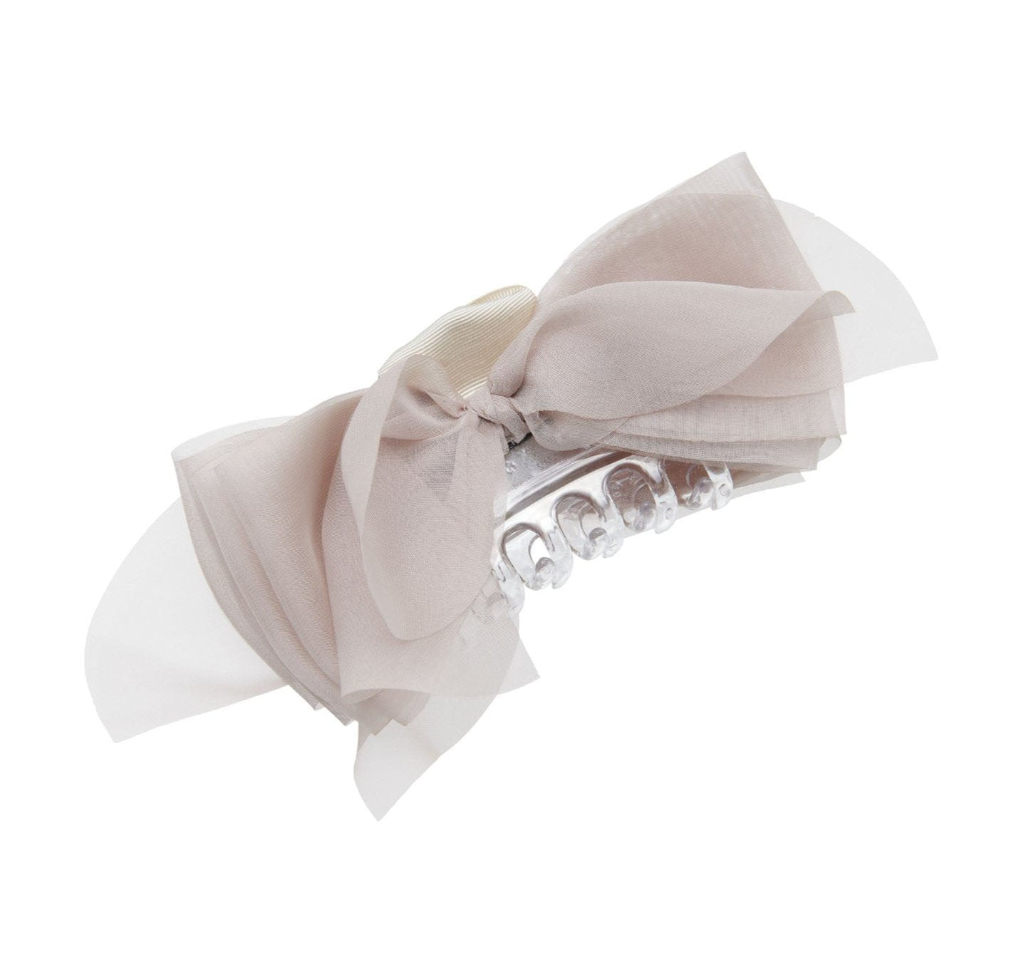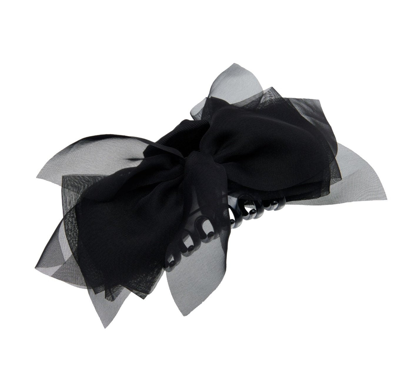 Vi præsenterer vores hårklemme med et strejf af fortryllelse - en finurlig organzasløjfe, der løfter dit hårtilbehør