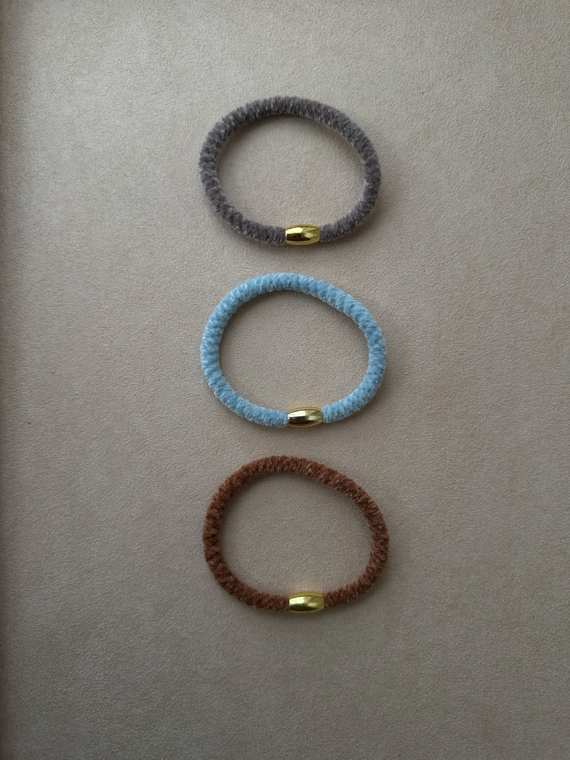 En stilfuld hår-elastik i fløjl med en smuk messingperle som accent. Den kommer i en 6-pak med forskellige farver, perfekt til at tilføje et elegant, feminint touch til enhver frisure - velegnet til både hverdagsbrug og særlige lejligheder.