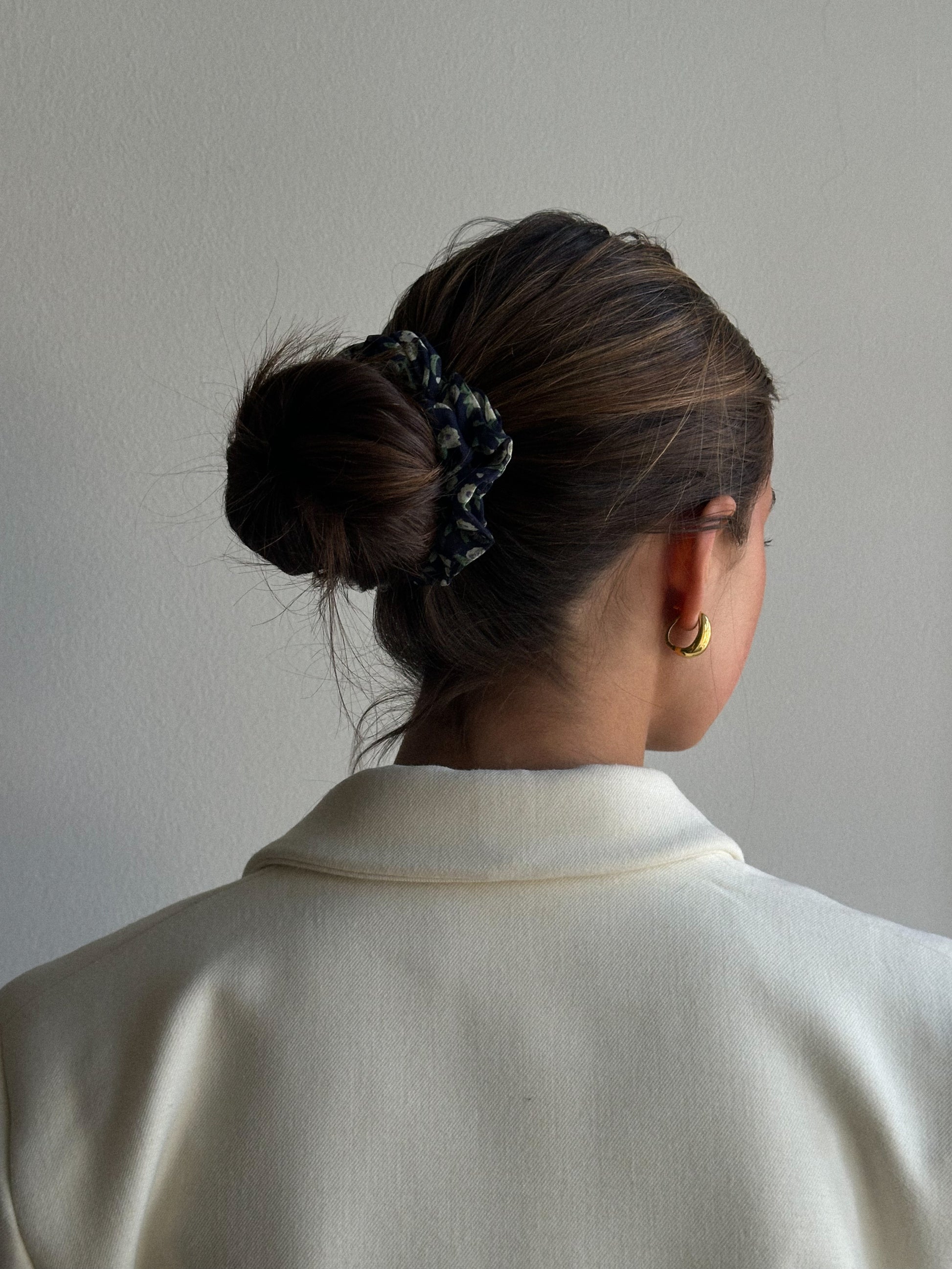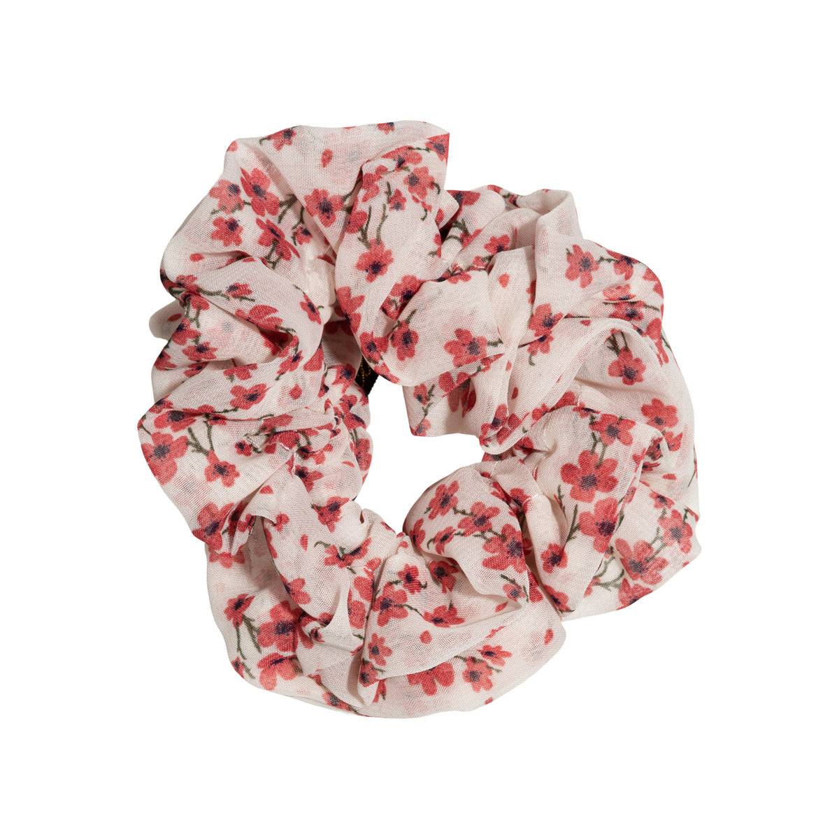 Scrunchie med sødt blomsterprint. Fås i mange smukke farver