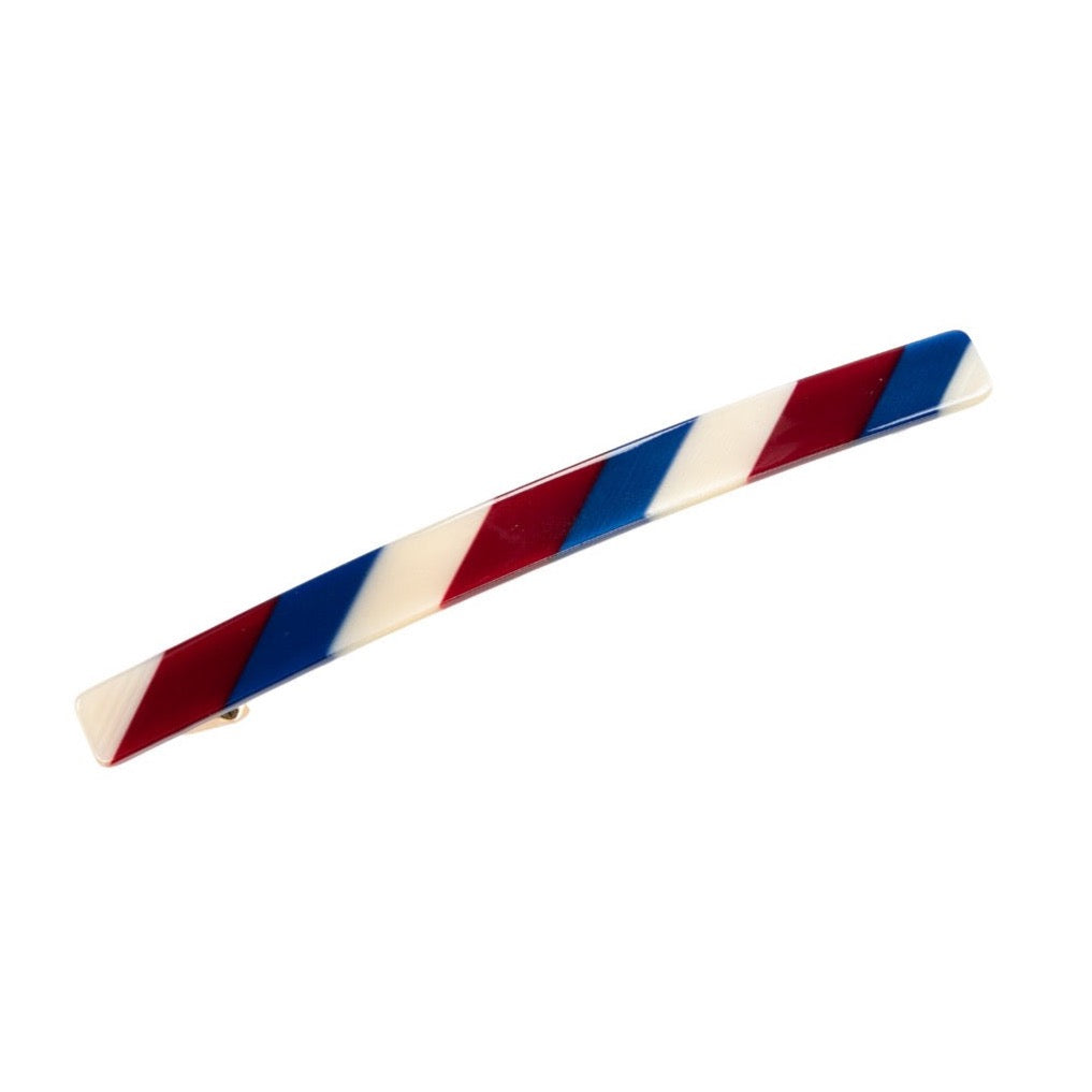 Dette er vores klassiske Frenchie med striber. De er 10 cm i bredden og fås i mange flotte farver. Clipsene er gode til mange hårtyper, da du kan tage metalstøttelaget ud for at få plads til mere eller tykkere hår.