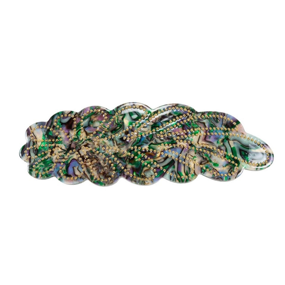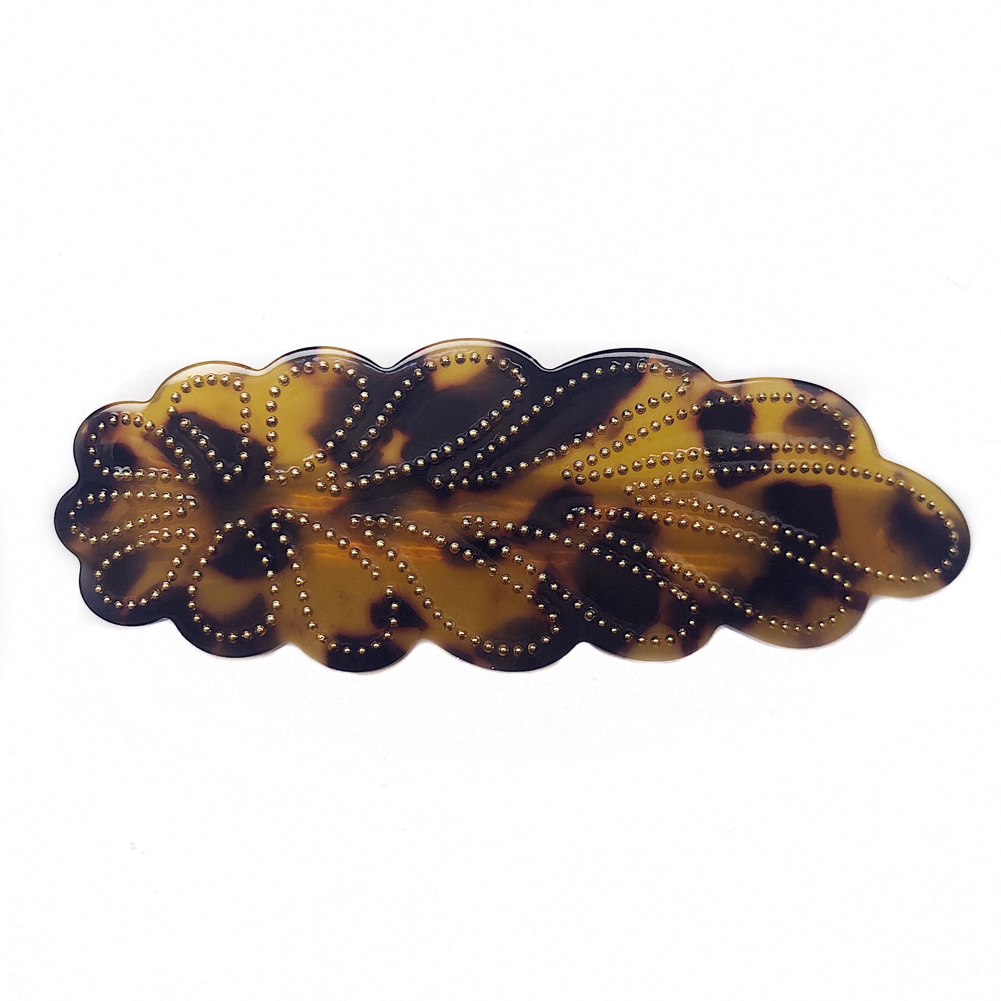 Elegant hårspænde med guldbelagte metalprikker. Fås i mange farvevariationer