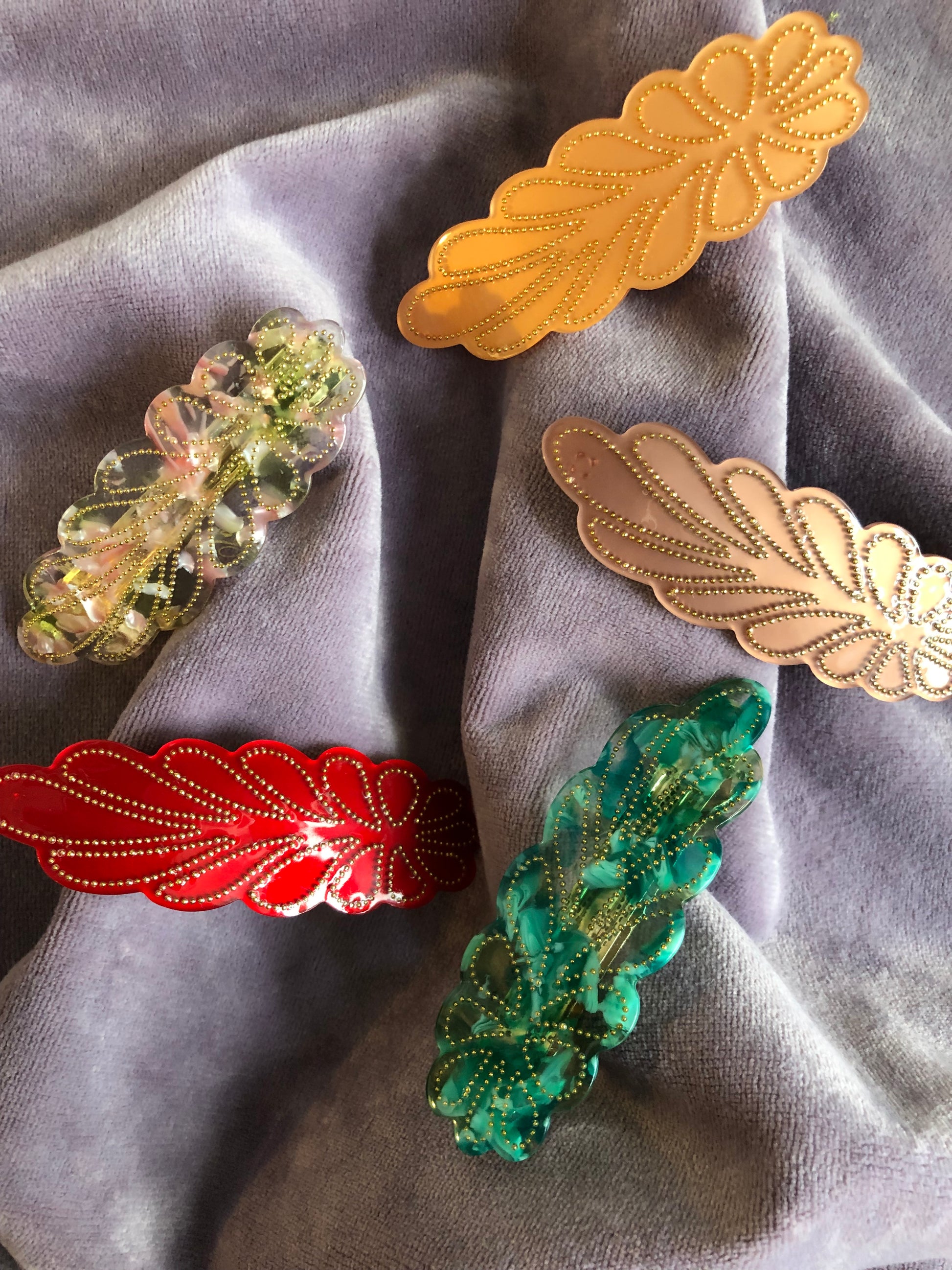 Størstedelen af vores hårklemmer og spænder er lavet af celluloseacetat.