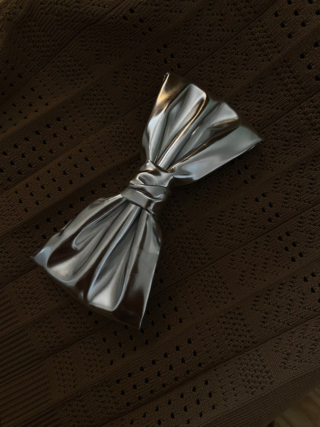 Vi præsenterer Kiki Bow - en elegant metallisk hårsløjfe, der udstråler chik raffinement