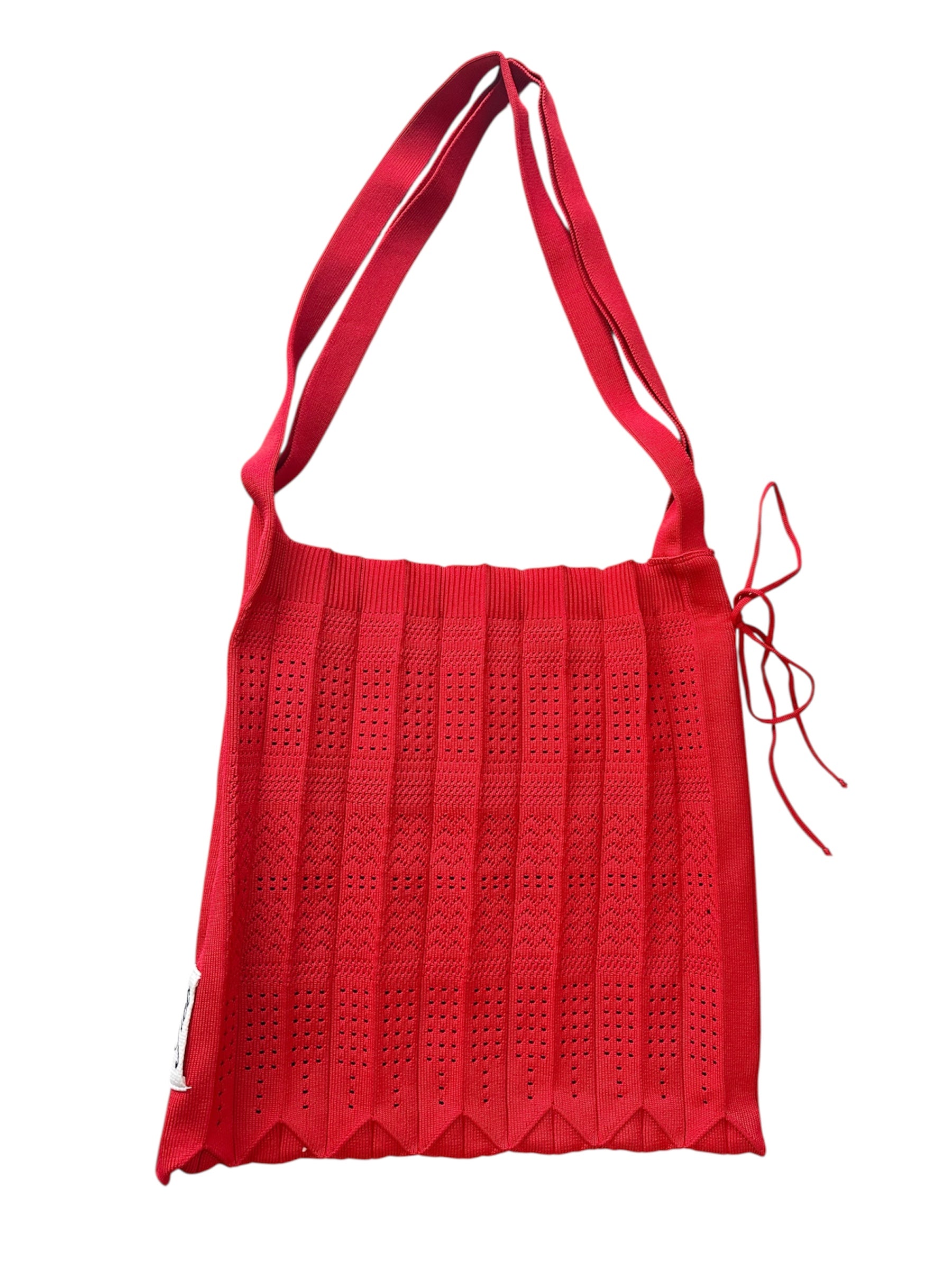 Tasken er lavet af et strækbart materiale og er ikke egnet til at bære tunge ting, som f.eks. bærbare computere eller bøger.