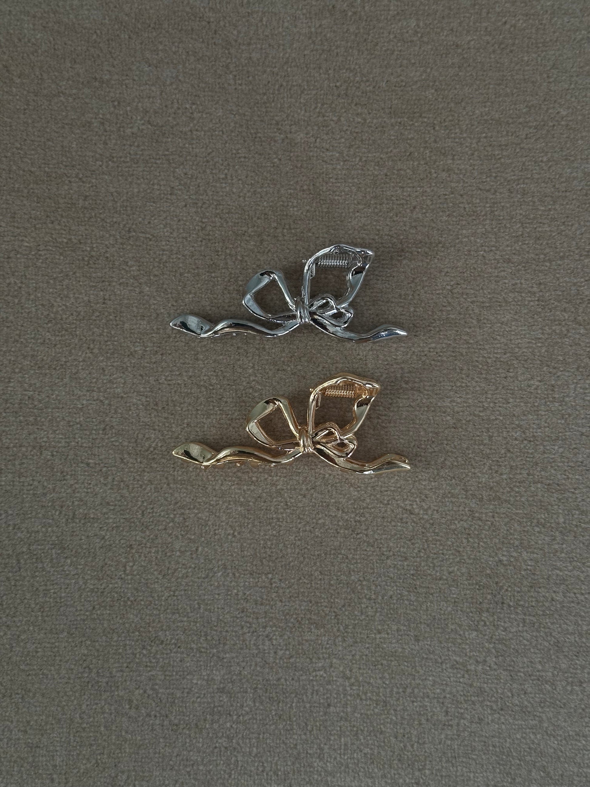 Vi præsenterer vores Petit Metallic Bow klemme, det ultimative tilbehør til at løfte din hårstyling med et strejf af tidløs elegance