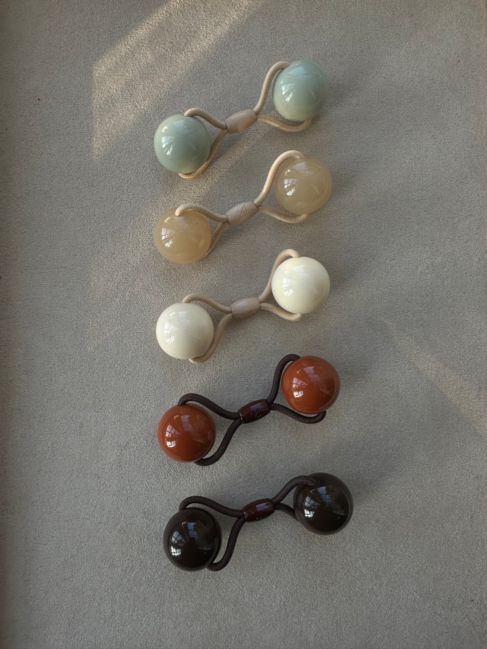 Remina Elastic er et stilfuldt og funktionelt elastisk bånd designet til daglig brug. Med to glatte kugler lavet af farvestrålende harpiks tilføjer det et strejf af farve, samtidig med at det giver et sikkert og behageligt hold.