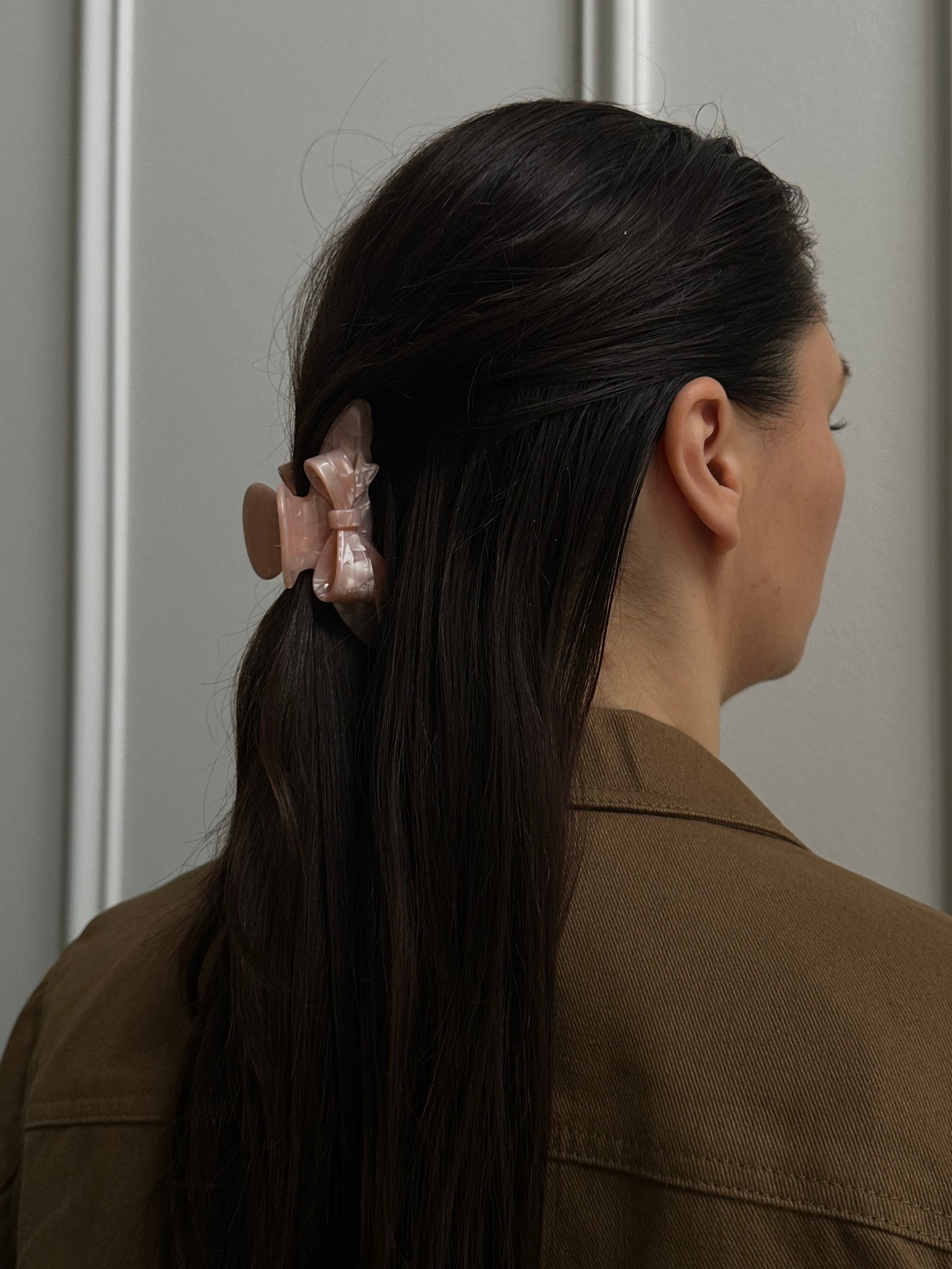 Vi præsenterer Ruban klemmen, en herlig blanding af funktionalitet og feminin flair. Dette charmerende tilbehør har et klassisk klemme design prydet med en lille sløjfe, der tilføjer et strejf af sødme til enhver frisure