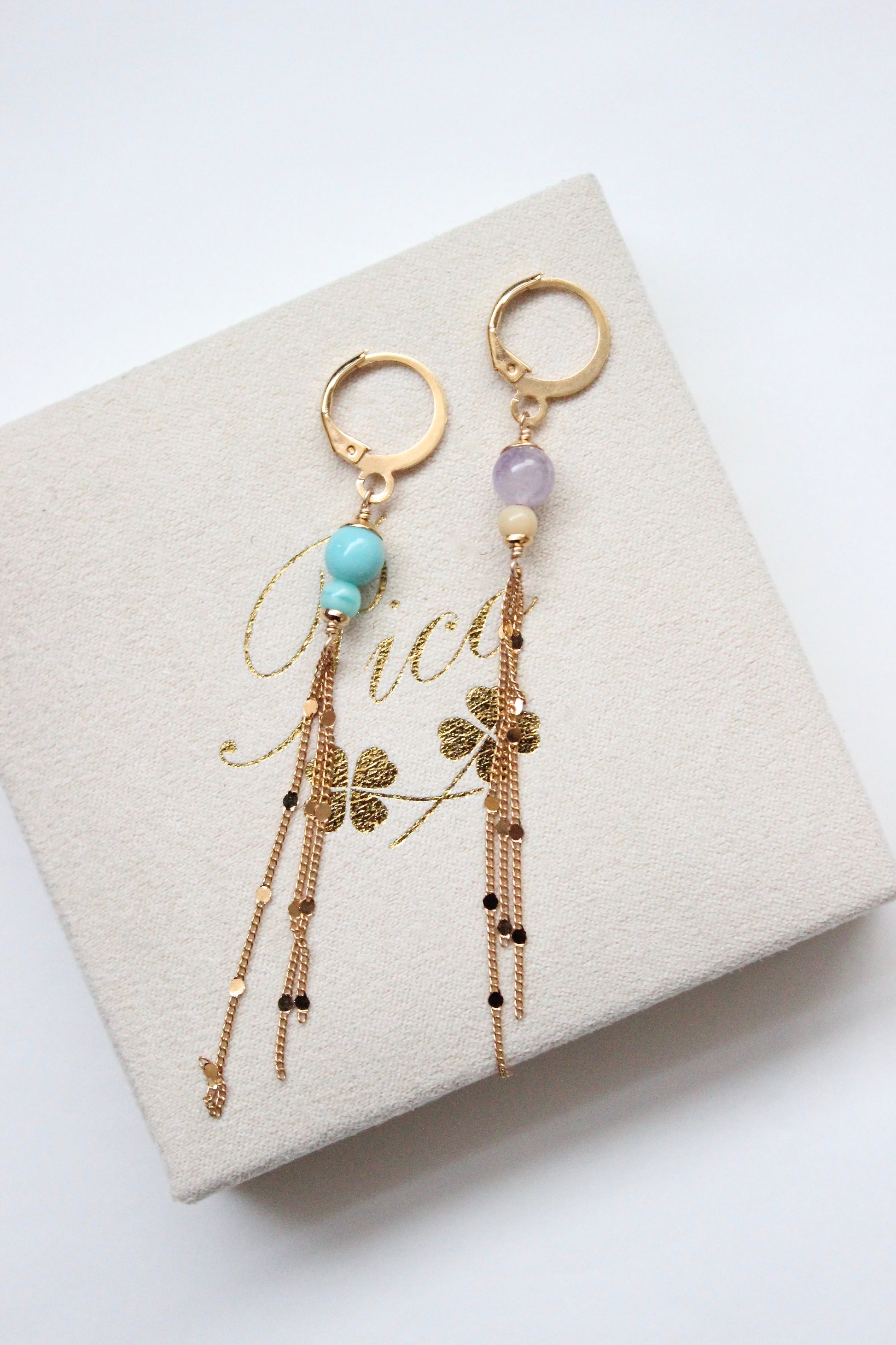Vedhæng: 24 karat forgyldt messing og glasperler