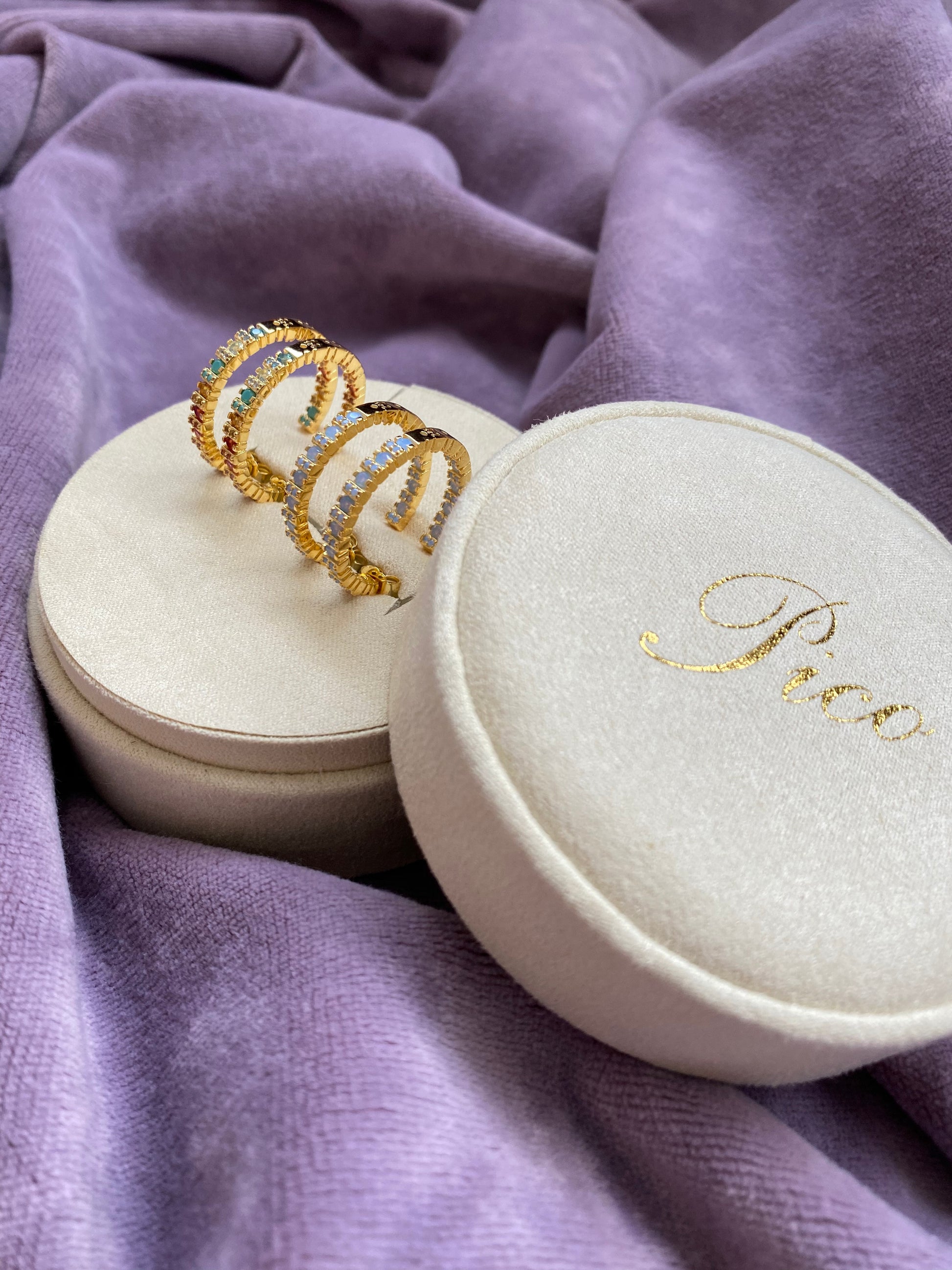 Grundmaterialet i creoler som Rainy Hoop, Sea Crystal Stud og Siri Crystal Stud er sølv, som er et blødt materiale. Med tiden og ved regelmæssig brug vil disse produkter miste deres form, hvis du ikke er forsigtig når creolen lukkes i. Stangen vil ofte bevæge sig lidt nedad på grund af tryk, når den lukkes. Dette kan resultere i, at øreringe ikke kan åbnes og lukkes korrekt. Dette problem kan løses ved at løfte stangen en smule med lillefingeren, indtil den kan åbnes og lukkes igen. Hvis du er usikker på hvordan du gør dette er du altid velkommen til at kigge forbi Picos værksted i Grønnegade og få hjælp.