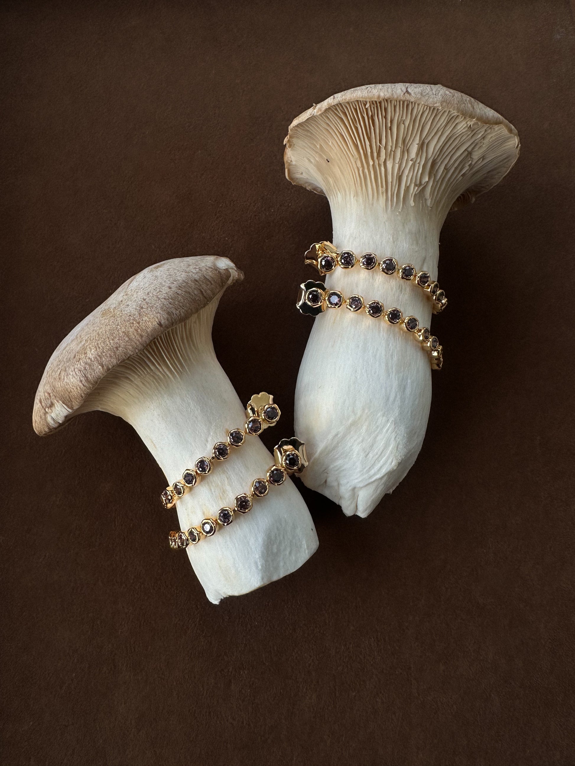 Vi arbejder med Nanokrystaller® i de fleste af vores smykker. Disse krystaller er menneskeskabte (fremstillet i et laboratorium) og af meget høj kvalitet. Fordelen ved disse menneskeskabte krystaller er den smukke farvepalet. Som brugt i vores Rainy Hoops, Siri Hoops, Alphabet Stud og Pendants, Fruit Stud m.m. I nogle tilfælde bruger vi også Swarovski krystaller, men på grund af den mindre farveskala hos Swarovski foretrækker vi Nanocrystals®.
